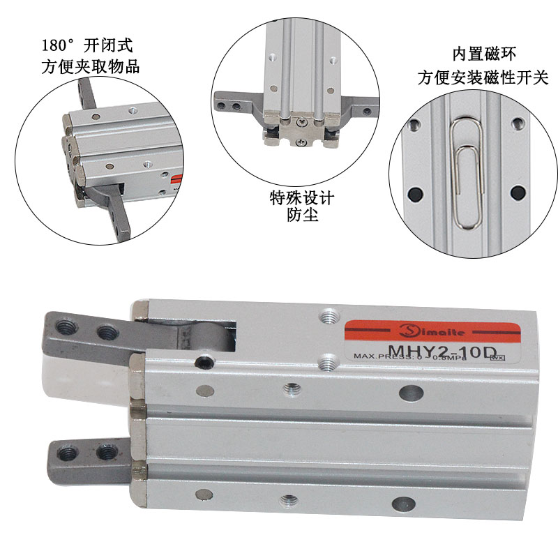 2、MHY2系列手指氣缸是雙作用運(yùn)作方式,以實(shí)現(xiàn)往復(fù)運(yùn)作;